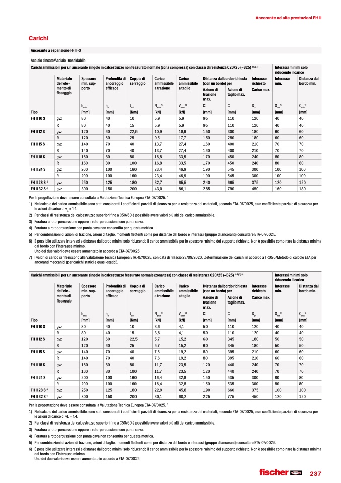 7) IvaloridicaricosiriferisconoallaValutazioneTecnicaEuropeaETA-07/0025,condatadirilascio23/09/2020.DeterminazionedeicarichiinaccordoaTR055/MetododicalcoloETAper
