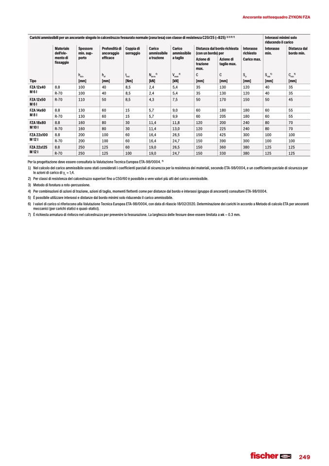 6) IvaloridicaricosiriferisconoallaValutazioneTecnicaEuropeaETA-98/0004,condatadirilascio18/02/2020.DeterminazionedeicarichiinaccordoaMetododicalcoloETAperancoranti