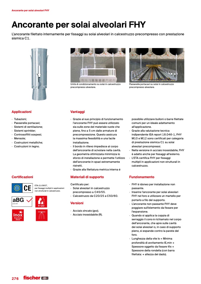 L’ancorante filettato internamente per fissaggi su solai alveolari in calcestruzzo precompresso con prestazione