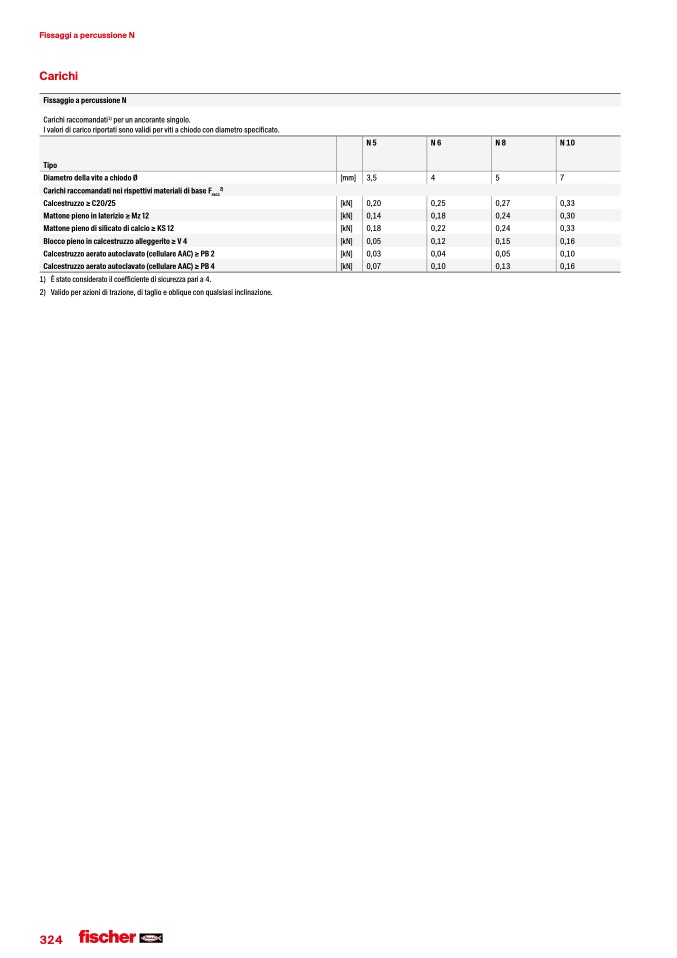 I valori di carico riportati sono validi per viti a chiodo con diametro specificato.