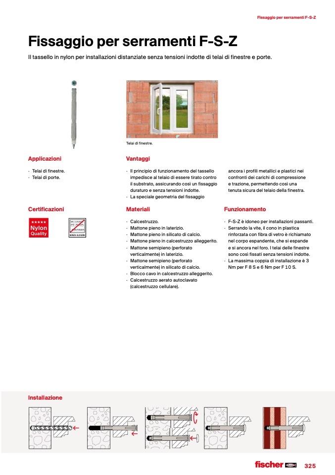 Il tassello in nylon per installazioni distanziate senza tensioni indotte di telai di finestre e porte.