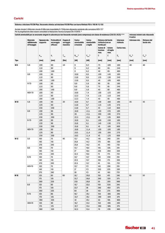 Sistema a iniezione FIS EM Plus: Ancorante chimico ad iniezione FIS EM Plus con barra filettata FIS A / RG M / G / GX