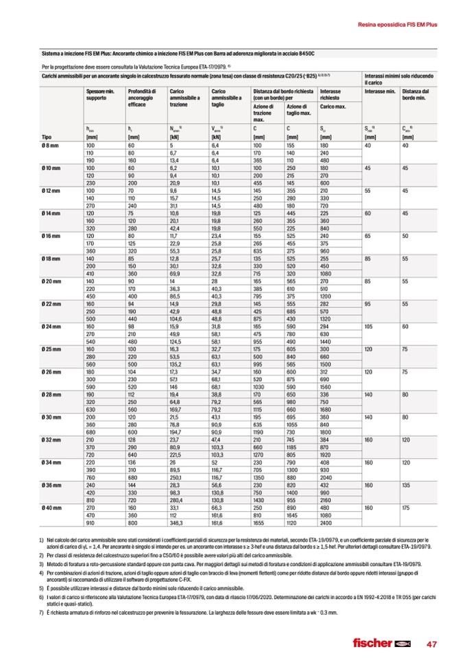 6) IvaloridicaricosiriferisconoallaValutazioneTecnicaEuropeaETA-17/0979,condatadirilascio17/06/2020.DeterminazionedeicarichiinaccordoaEN1992-4:2018eTR055(percarichi