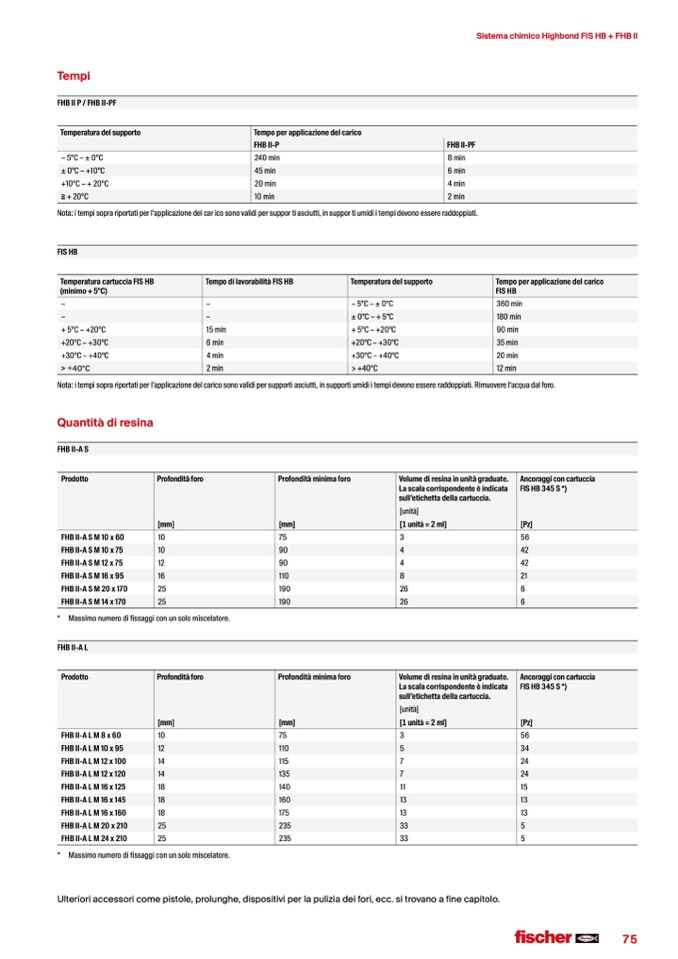 Nota: i tempi sopra riportati per l’applicazione del carico sono validi per supporti asciutti, in supporti umidi i tempi devono essere raddoppiati. Rimuovere l‘acqua dal foro.