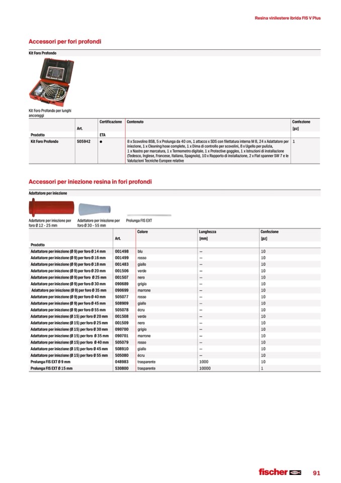 Accessori per iniezione resina in fori profondi