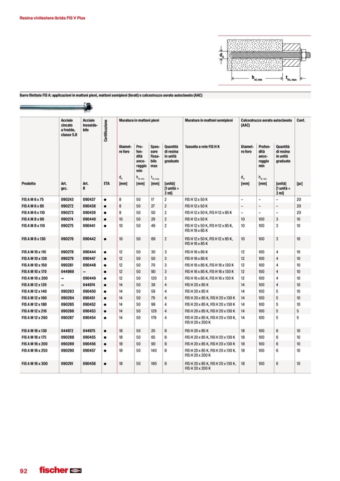 Barre filettate FIS A: applicazioni in mattoni pieni, mattoni semipieni (forati) e calcestruzzo aerato autoclavato (AAC)