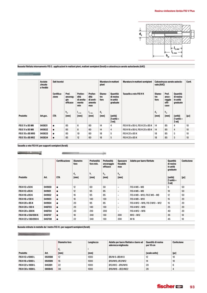 Bussola filettata internamente FIS E: applicazioni in mattoni pieni, mattoni semipieni (forati) e calcestruzzo aerato autoclavato (AAC)