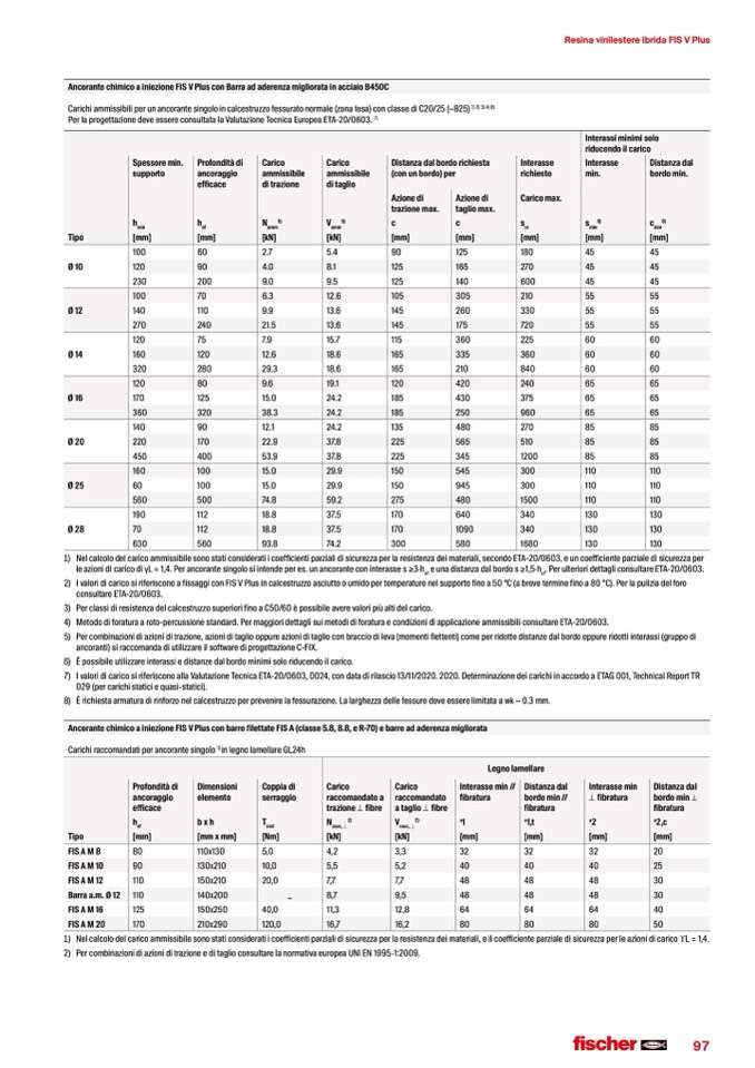 2) IvaloridicaricosiriferisconoafissaggiconFISVPlusincalcestruzzoasciuttooumidopertemperaturenelsupportofinoa50°C(abreveterminefinoa80°C).Perlapuliziadelforo