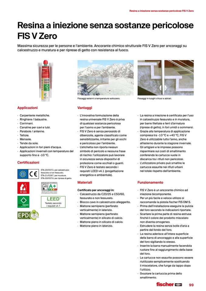 Massima sicurezza per le persone e l‘ambiente. Ancorante chimico strutturale FIS V Zero per ancoraggi su