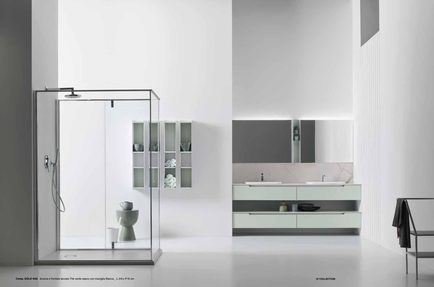 Comp. GOLD 05G Scocca e frontale laccato Thè verde opaco con maniglia Bianca _ L 210 x P 51 cm