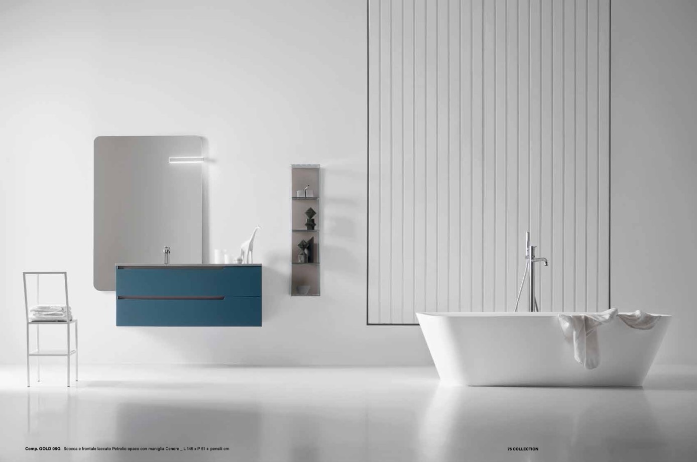 Comp. GOLD 09G Scocca e frontale laccato Petrolio opaco con maniglia Cenere _ L 145 x P 51 + pensili cm