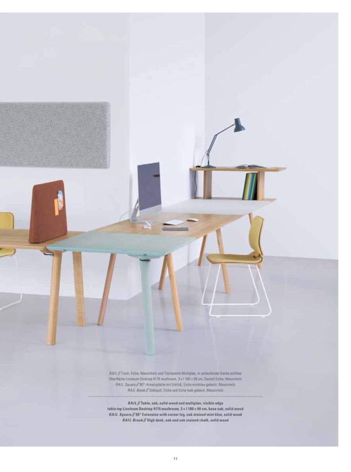 RAIL // Tisch, Eiche, Massivholz und Tischplatte Multiplex, in umlaufender Kante sichtbar