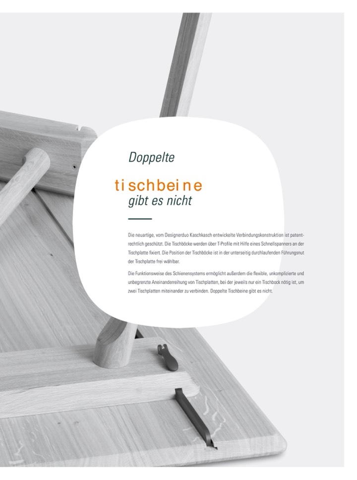 Die neuartige, vom Designerduo Kaschkasch entwickelte Verbindungskonstruktion ist patent-