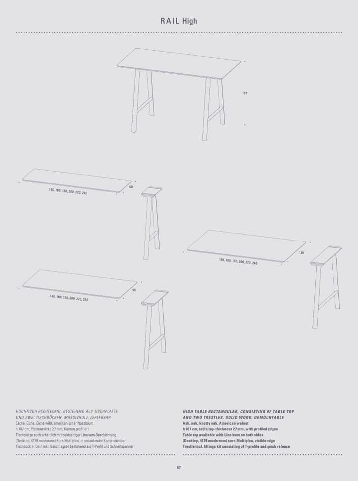 h 107 cm, table top-thickness 27 mm, with profiled edges