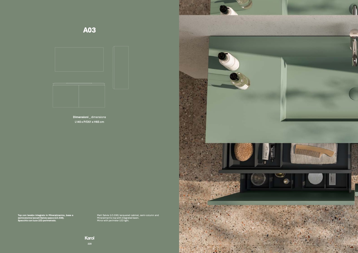 Mineralmarmo top with integrated basin.