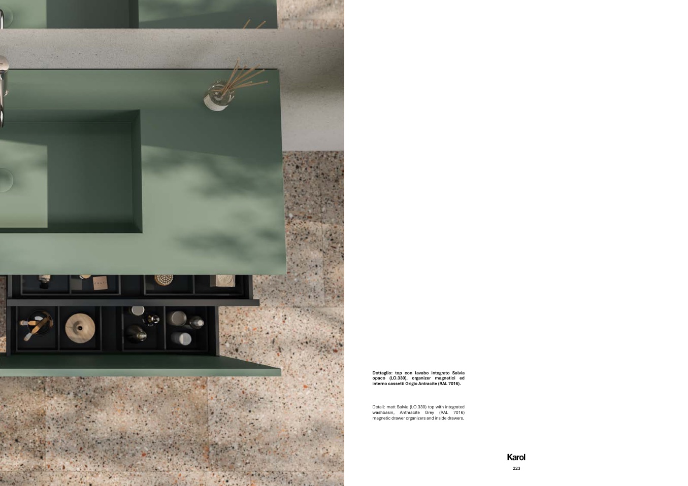 Dettaglio: top con lavabo integrato Salvi