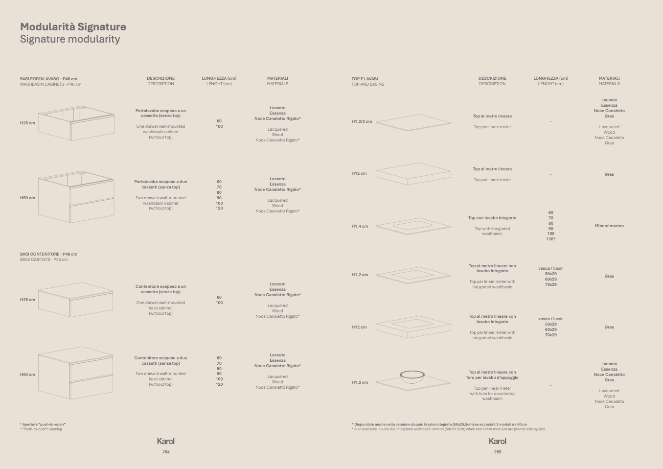 * Disponibile anche nella versione doppio lavabo integrato (50x29,5cm) se accostati 2 moduli da 60cm