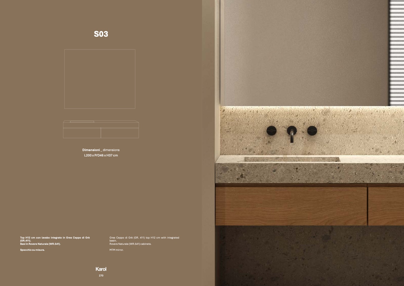 Top H12 cm con lavabo integrato in Gres Ceppo di Gr