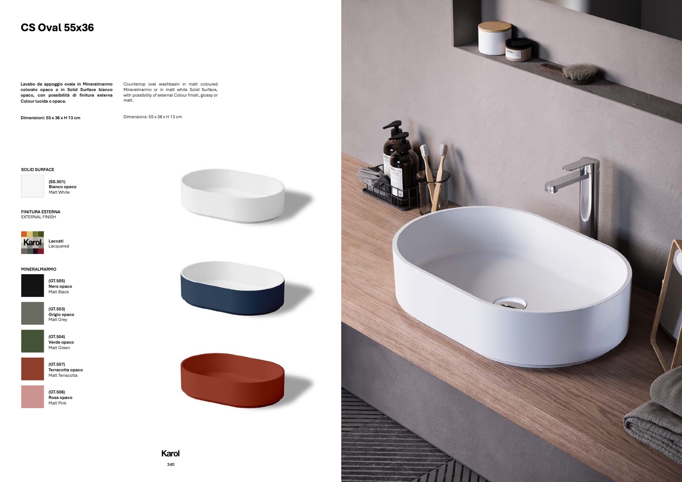 colorato opaco o in Solid Surface bianc