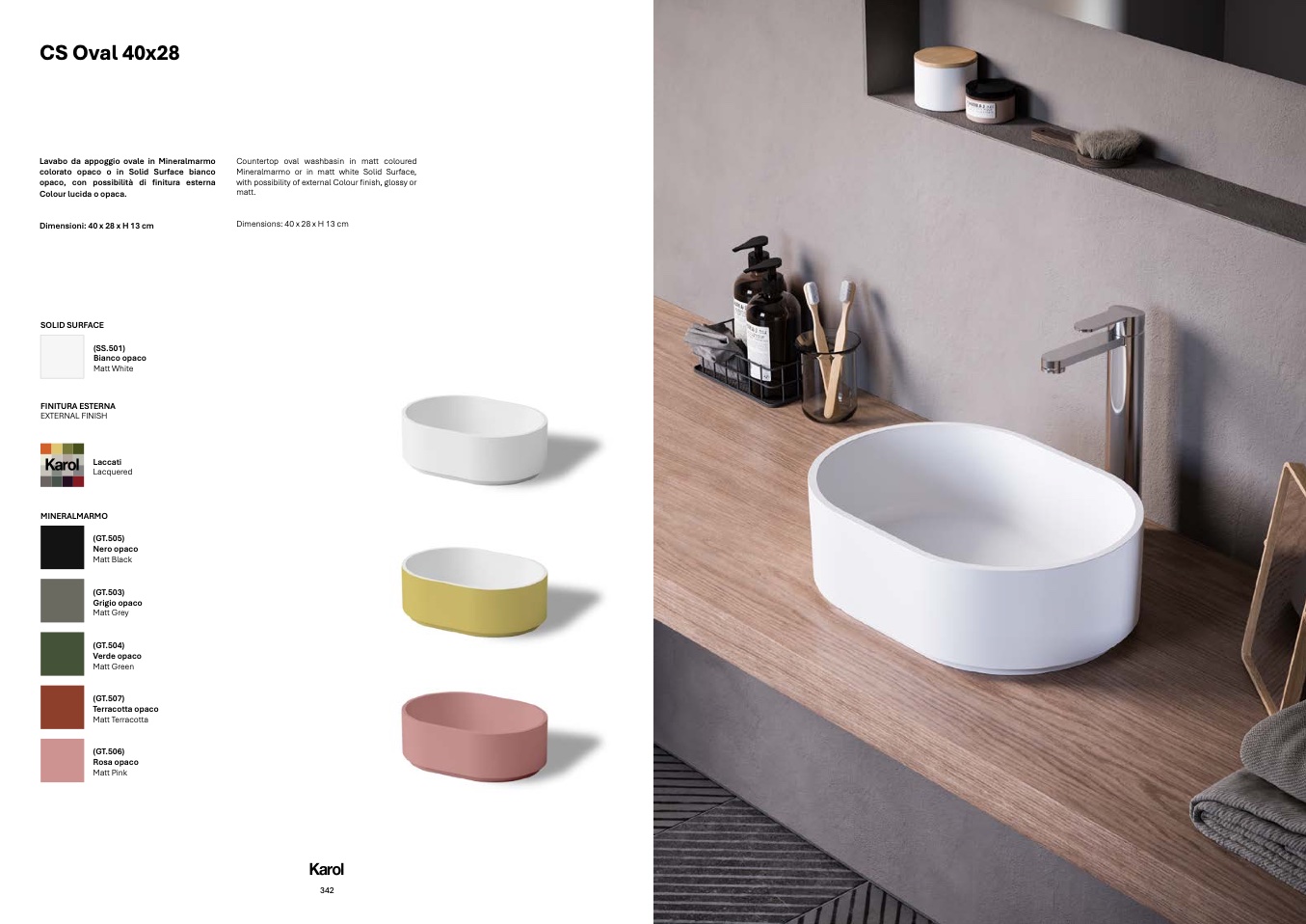 Countertop oval washbasin in matt coloure