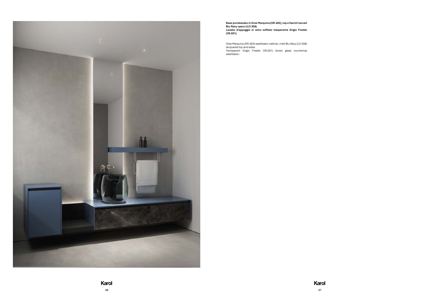 Gres Marquina (GR.402) washbasin cabinet, matt Blu Navy (LO.358)