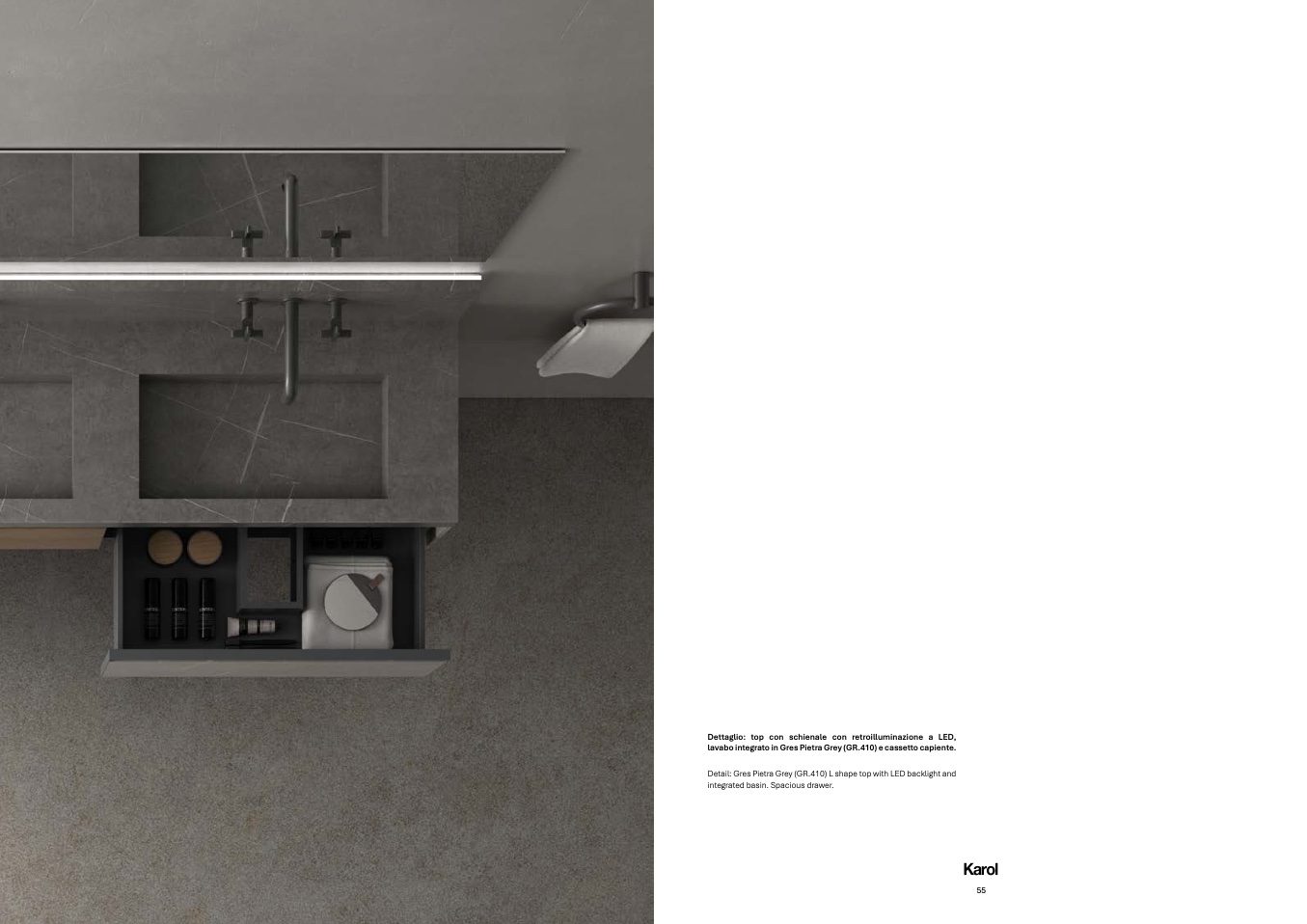 Detail: Gres Pietra Grey (GR.410) L shape top with LED backlight an