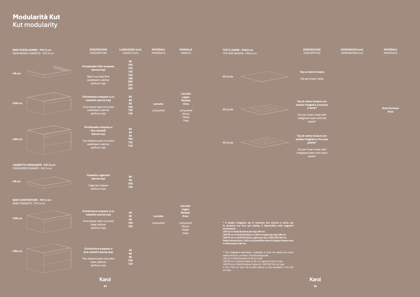 TOP AND BASINS - P45,6 cm