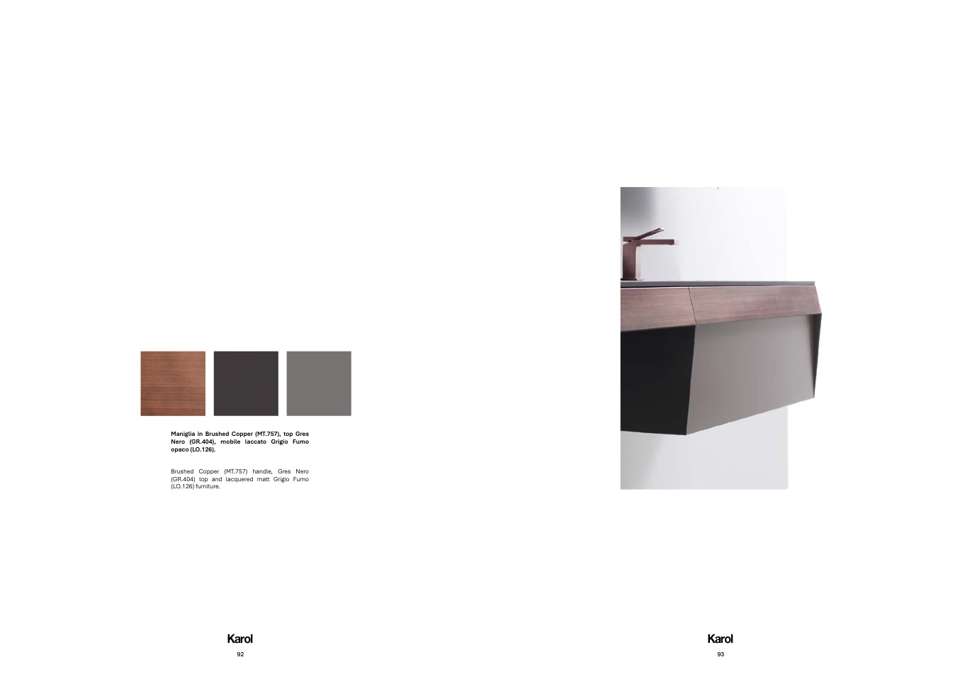 Brushed Copper (MT.757) handle, Gres Nero