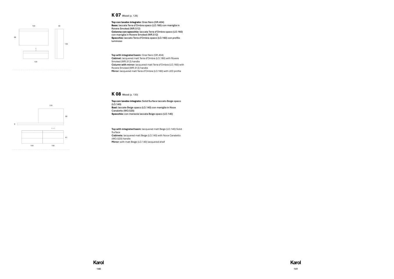 Cabinets: lacquered matt Beige (LO.140) with Noce Canaletto