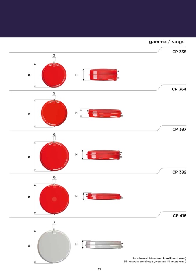 Le misure si intendono in millimetri (mm)