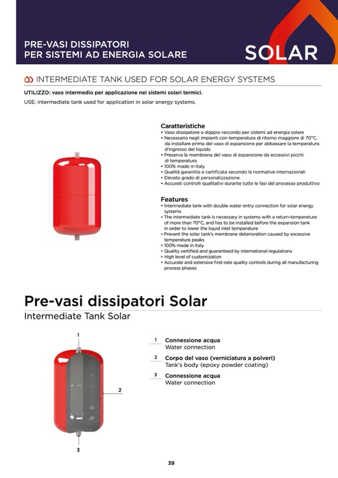 UTILIZZO: vaso intermedio per applicazione nei sistemi solari termici.
