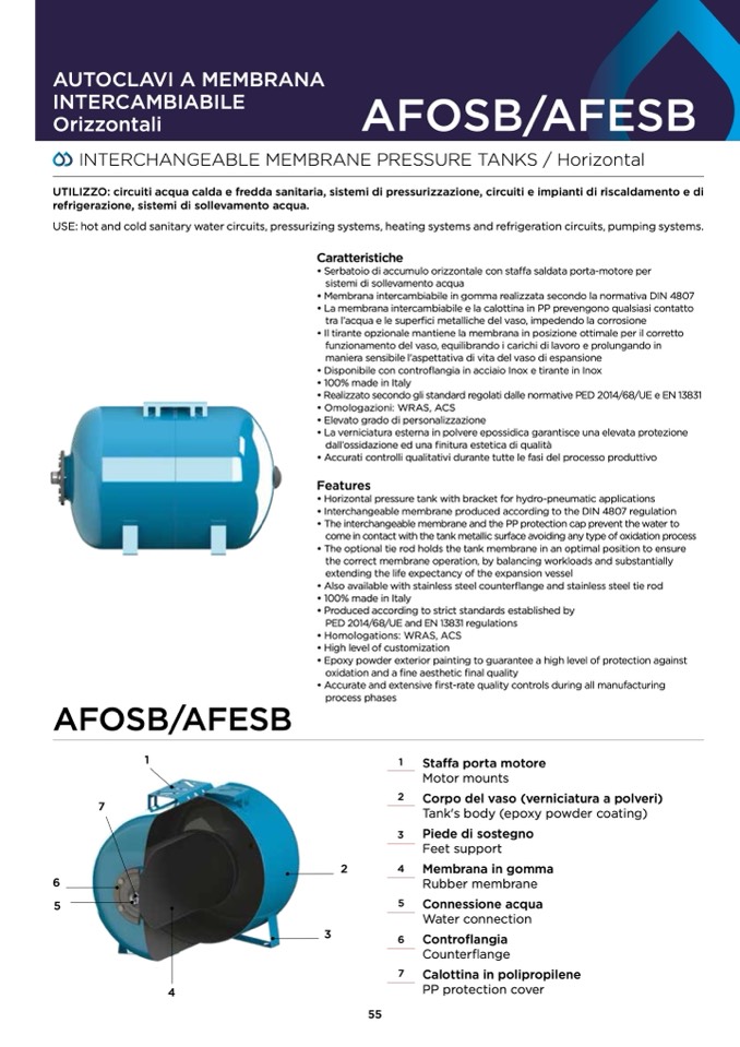 • Serbatoio di accumulo orizzontale con staffa saldata porta-motore per