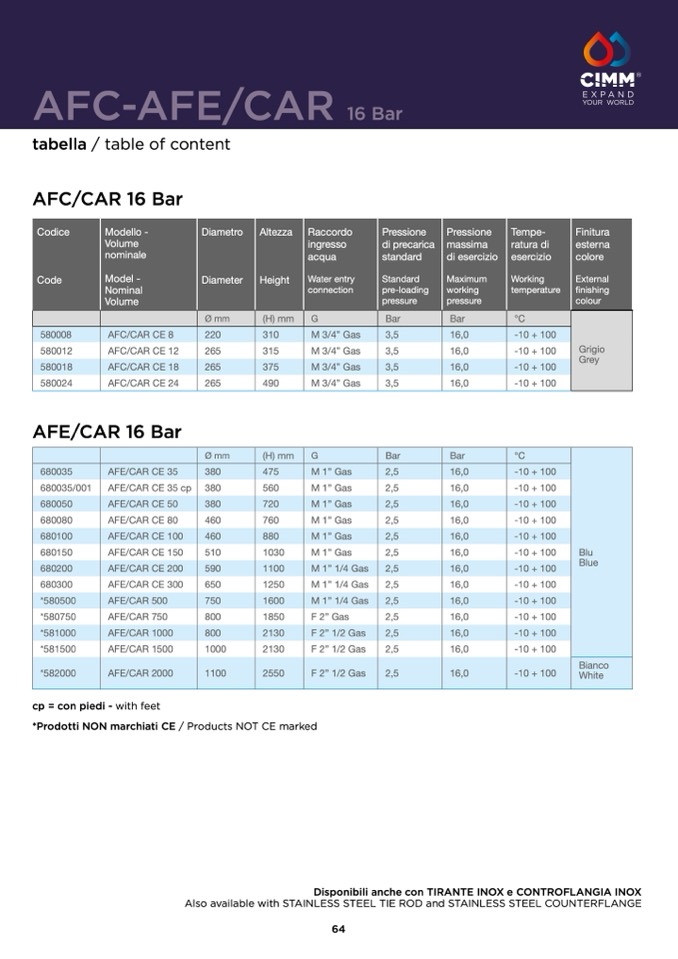 Also available with STAINLESS STEEL TIE ROD and STAINLESS STEEL COUNTERFLANGE