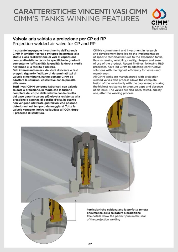 Tutti i vasi CIMM vengono fabbricati con valvole