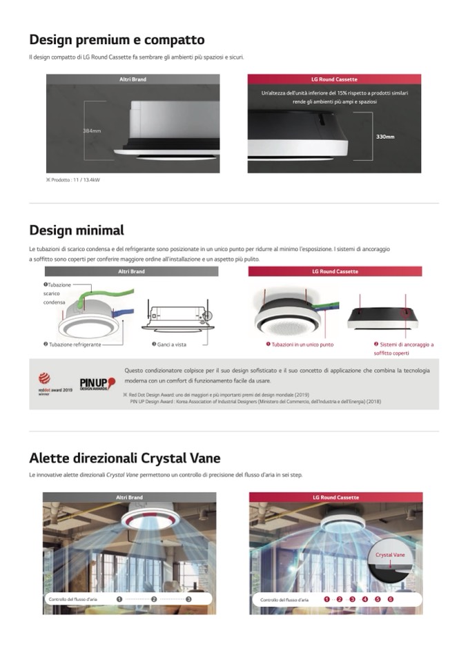 Il design compatto di LG Round Cassette fa sembrare gli ambienti più spaziosi e sicuri.