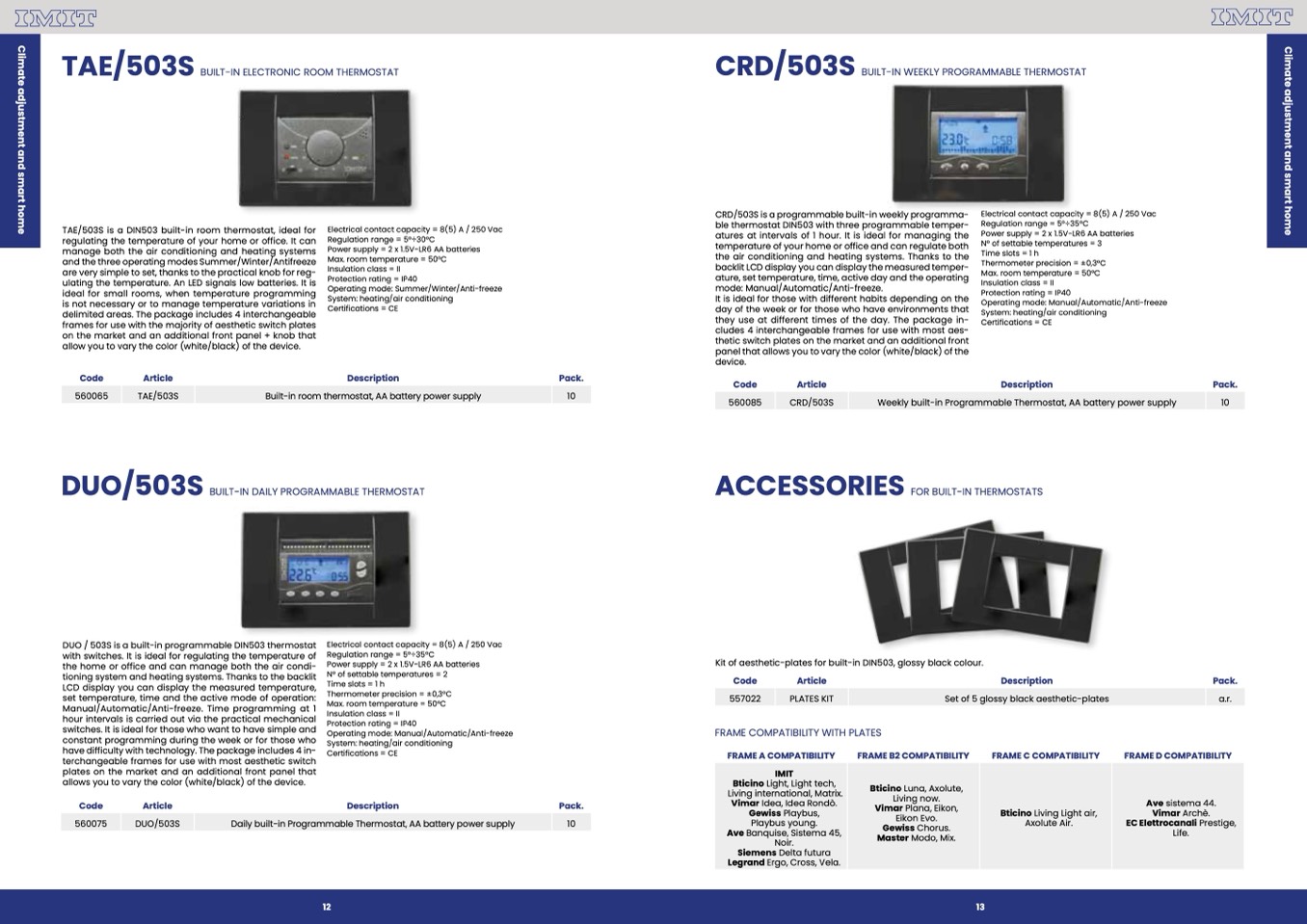 TAE/503S is a DIN503 built-in room thermostat, ideal for