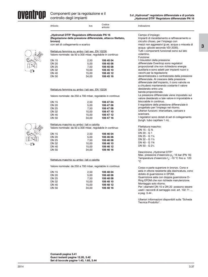 3.d „Hydromat“ regolatore differenziale e di portata