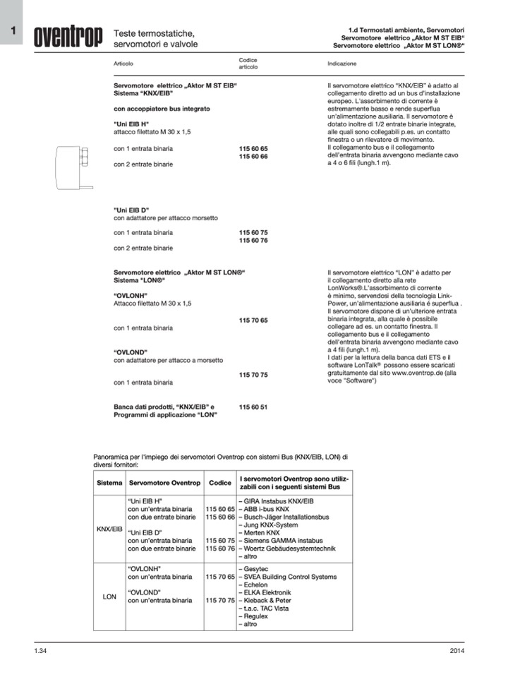 Panoramica per l'impiego dei servomotori Oventrop con sistemi Bus (KNX/EIB, LON) di