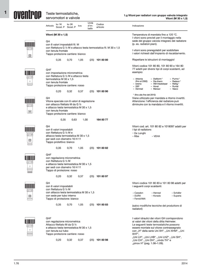 1.g Vitoni per radiatori con gruppo valvola integrato