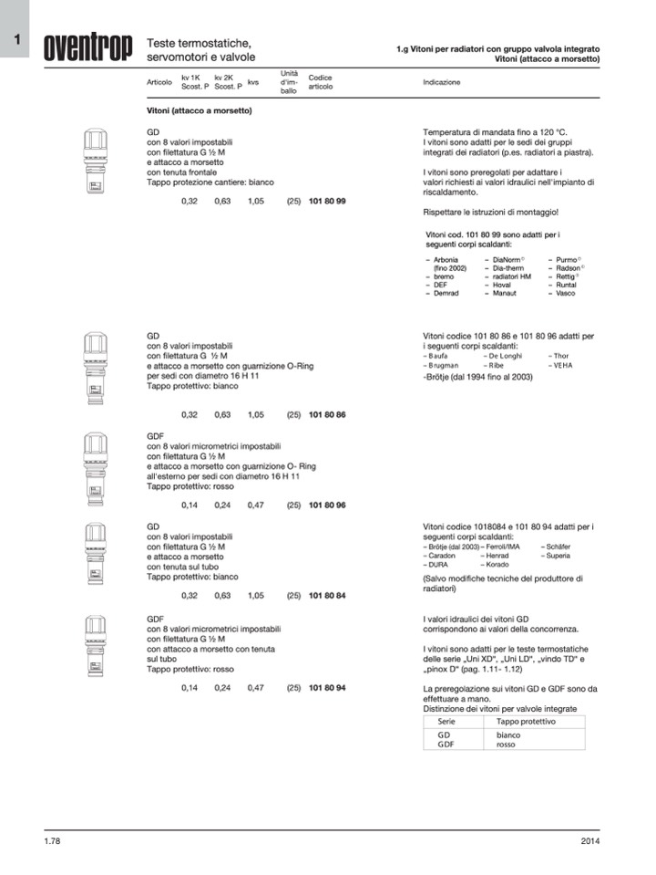 1.g Vitoni per radiatori con gruppo valvola integrato