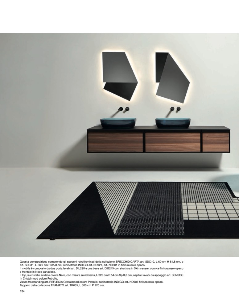art. SDC11, L 58,9 cm H 85,8 cm; rubinetteria INDIGO art. ND921, art. ND601 in
