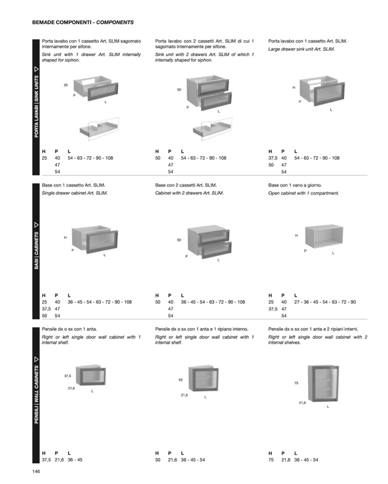 Porta lavabo con 1 cassetto Art. SLIM sagomato