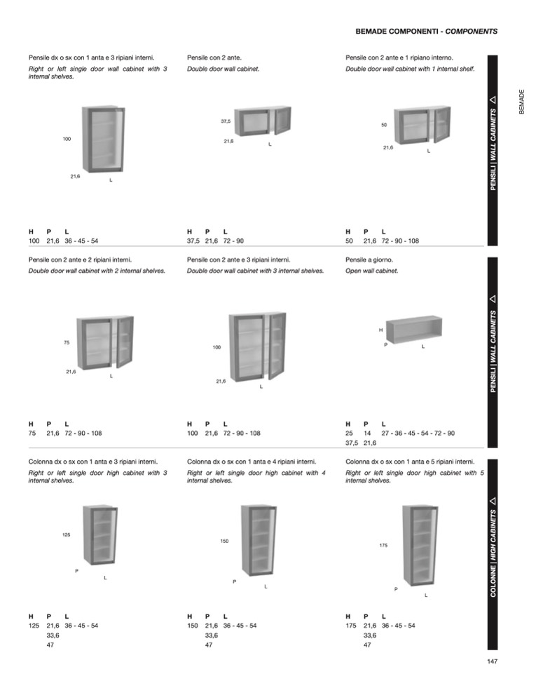 Pensile dx o sx con 1 anta e 3 ripiani interni.