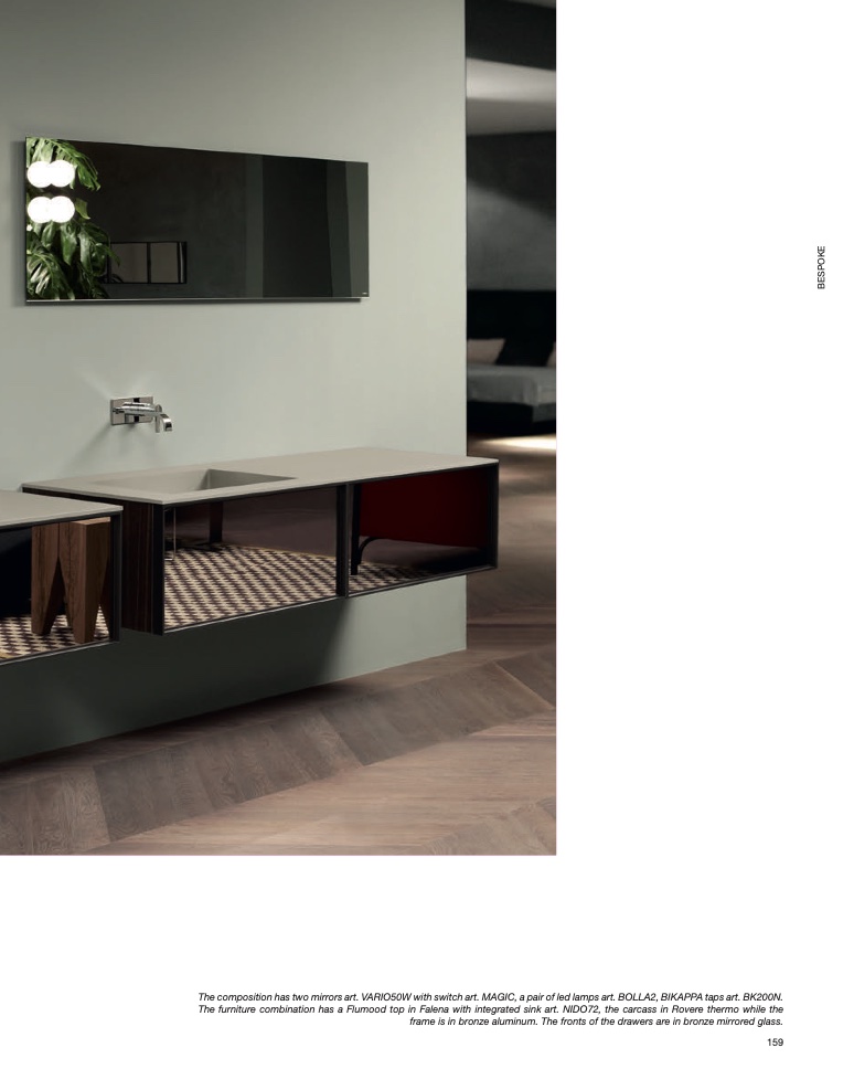 The composition has two mirrors art. VARIO50W with switch art. MAGIC, a pair of led lamps art. BOLLA2, BIKAPPA taps art. BK200N.