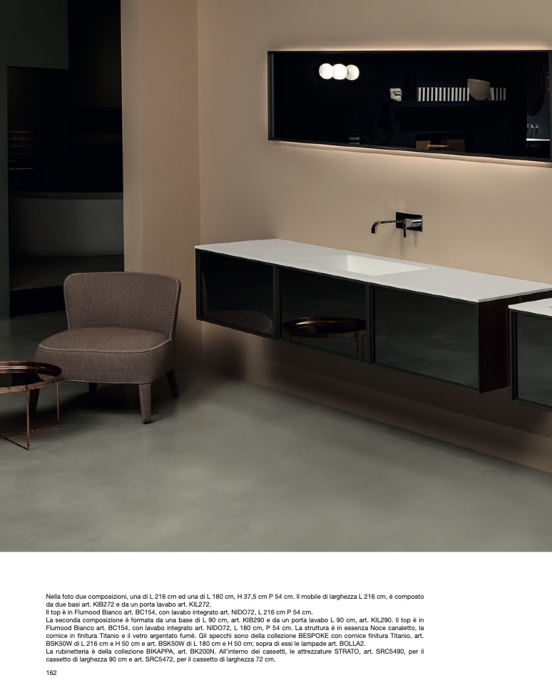 La rubinetteria è della collezione BIKAPPA, art. BK200N. All’interno dei cassetti, le attrezzature STRATO, art. SRC5490, per il