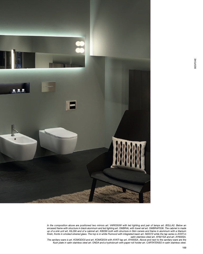 The sanitary-ware is art. KOMODO3 and art. KOMODO4 with AYATI tap art. AY400SA. Above and next to the sanitary-ware are the