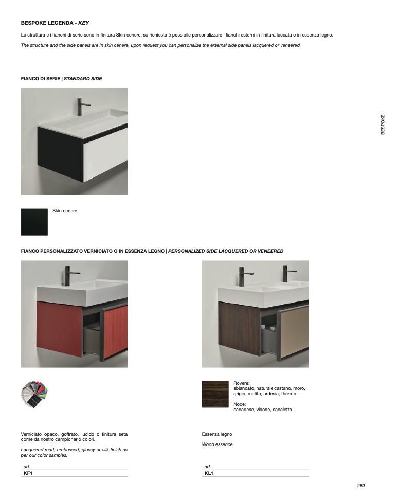 The structure and the side panels are in skin cenere, upon request you can personalize the external side panels lacquered or veneered.