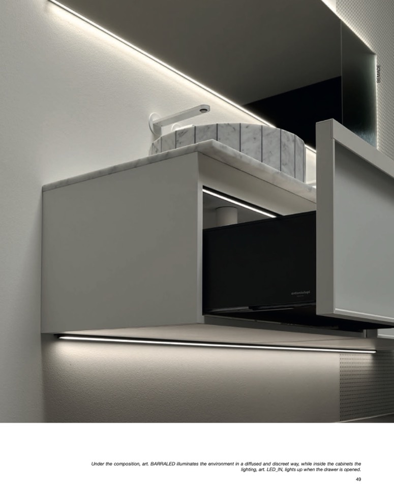 Under the composition, art. BARRALED illuminates the environment in a diffused and discreet way, while inside the cabinets the