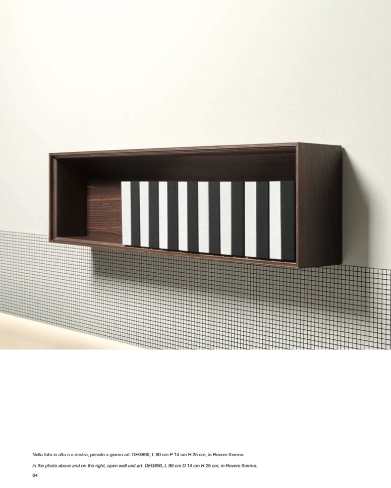 In the photo above and on the right, open wall unit art. DEG890, L 90 cm D 14 cm H 25 cm, in Rovere thermo.