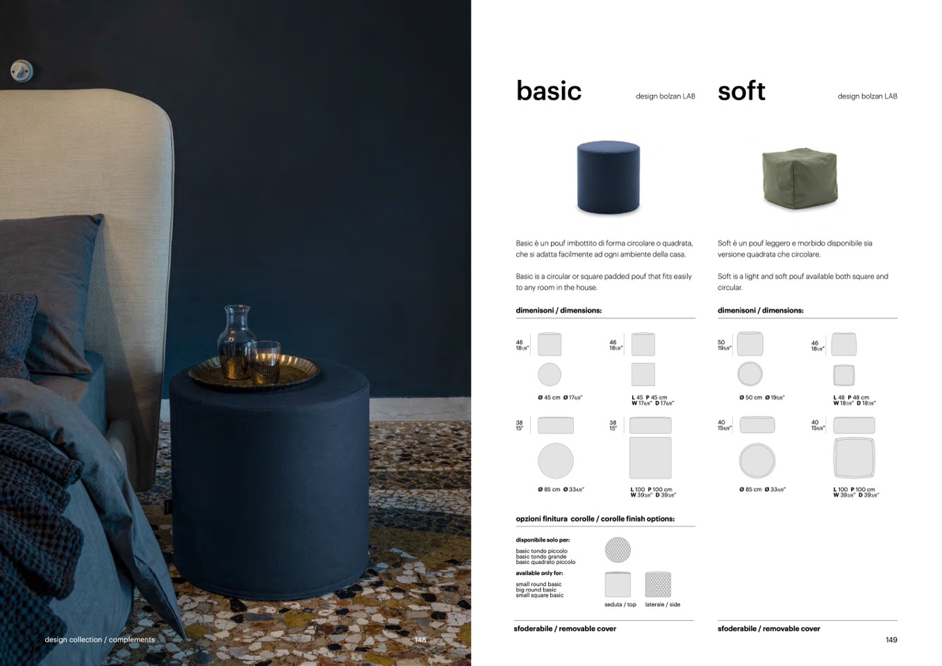 Basic is a circular or square padded pouf that fits easily